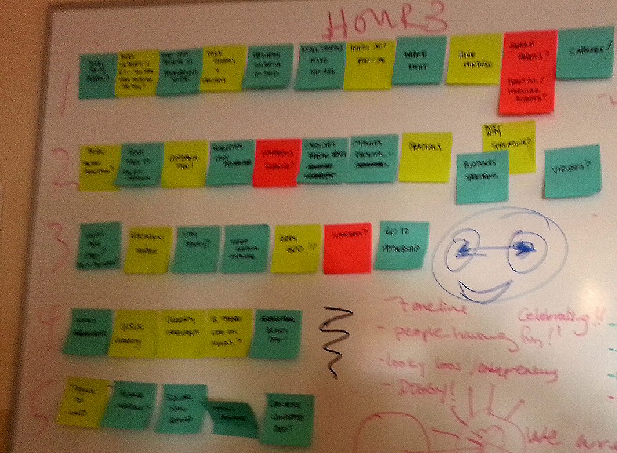 A question that came up was, how would Earthlings react when a an alien microbial substance attaches to people? Most likely, I thought, people would define a subclass of infected individuals to quarantine, then ignore that the more “important” classes are infected too. That’s what we did with AIDS. (Coincidentally, the US government just decided, after 30 years, to recommend HIV testing everybody, not just risk groups.) What do you think?
