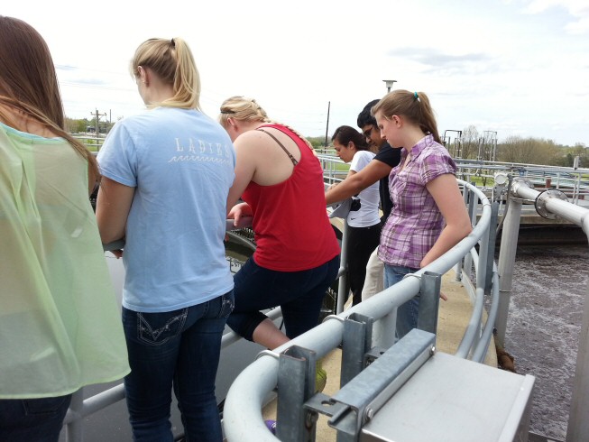 At the end of the term, Kenyon’s Microbiology lab takes our annual spring trip to the Mount Vernon wastewater treatment plant. Kenyon students brave the huge pipes that collect sewage from miles around, with filters collecting whatever you flush down, from hygiene items to undigested corn. After primary treatment, the “bugs” (treatment microbes) get down to business.