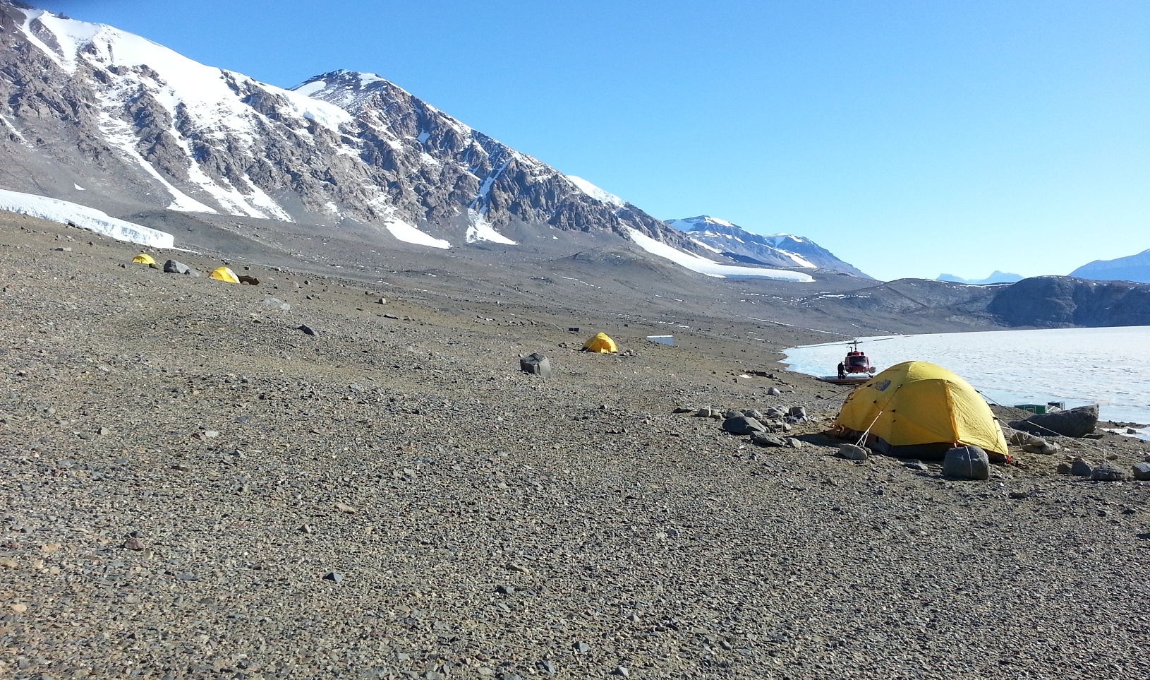 The helo has landed in the camp. We unload food, supplies, and my tent. Everyone sleeps and dresses within individual tents dotted around the lake, at well below freezing temperatures.