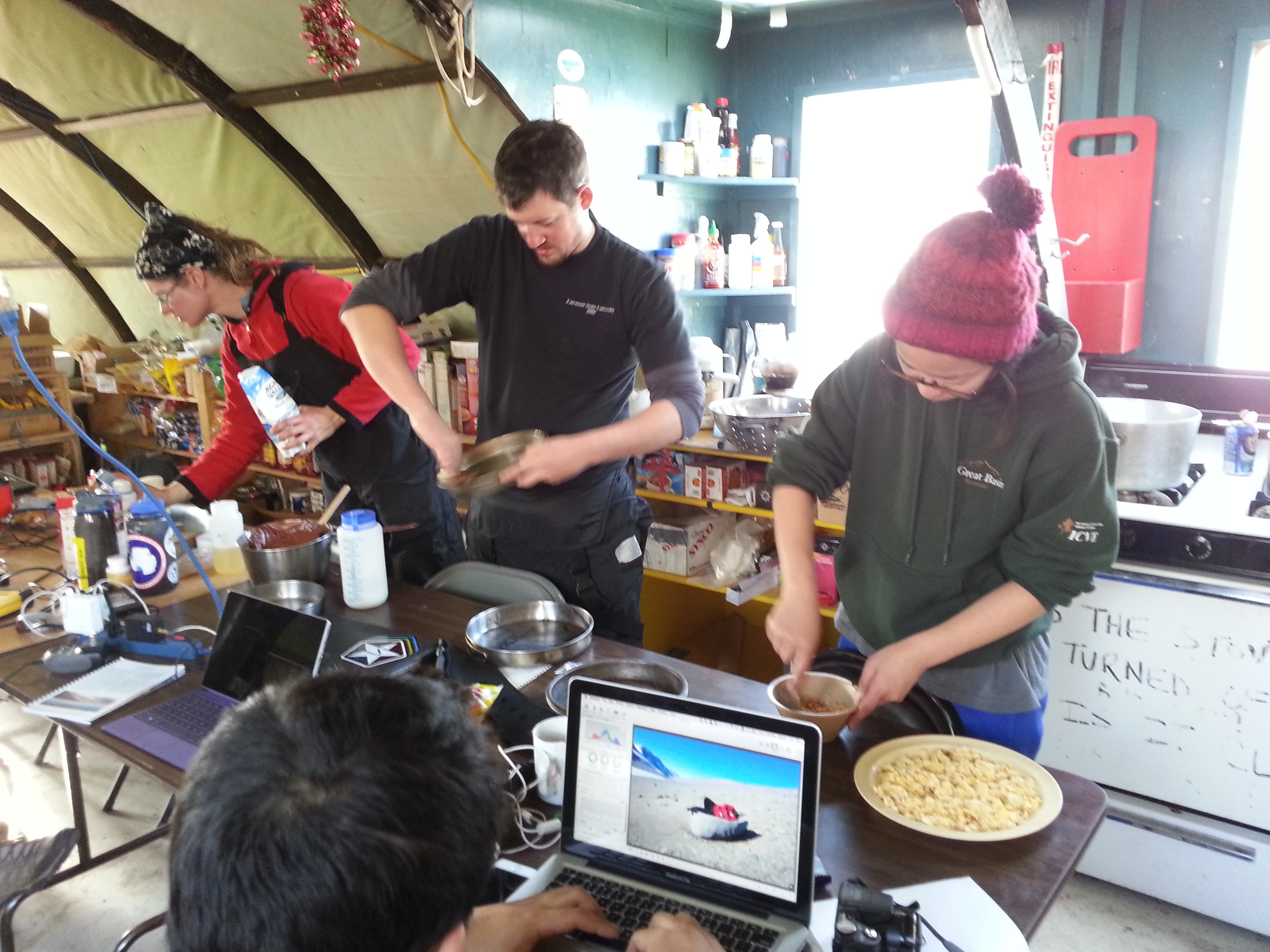 The whole group often cooks together. Here, Mie cooks Pad Thai while Chris helps Amy make a birthday cake for Ben (everyone was told to hush so he wouldn’t know, while climbing over the rest of us). Amy Chiuchiolo (Priscu lab director) is in her eleventh season, extremely peppy and keeps everyone going, a lot like Michelle Clark home at Bacteria Lab.