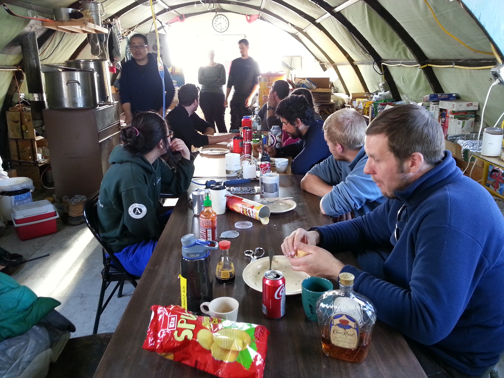 My, what a lot of people have dropped in for Mie’s dinner and Amy’s cake. The Jamesway is getting pretty full. Amy and her group are excited to be moving out tomorrow with all their great lake samples to analyze.