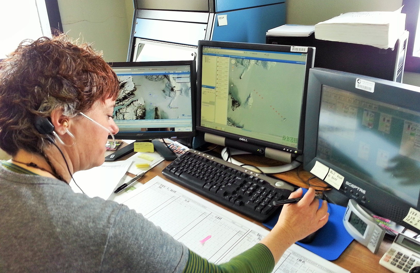 You can see at left the screen where two helicopters are off across the ice. The middle screen shows a plane arriving from New Zealand. At right are all the radio channels. This is an amazing amount for one person to keep track of, and keep all our travels safe. The buildings require all kinds of special maintenance.