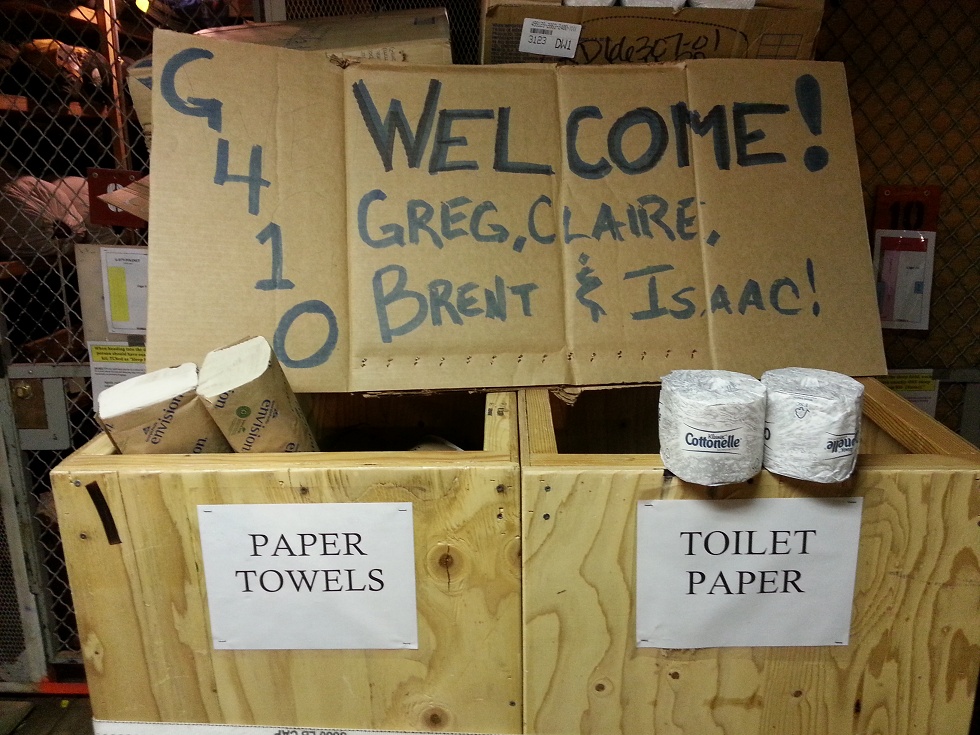 Kara is an expert sample shipper. She was hired for her degree in Environmental Science, so she understands why some live samples need to be shipped on ice, whereas others need to be frozen on dry ice or liquid nitrogen. Kara’s husband is Craig, the helitech who brought me home from the field late at night last week. There are a lot of hard-working couples here. Besides cubitainers, I was instructed to bring some other essential items of field science equipment: