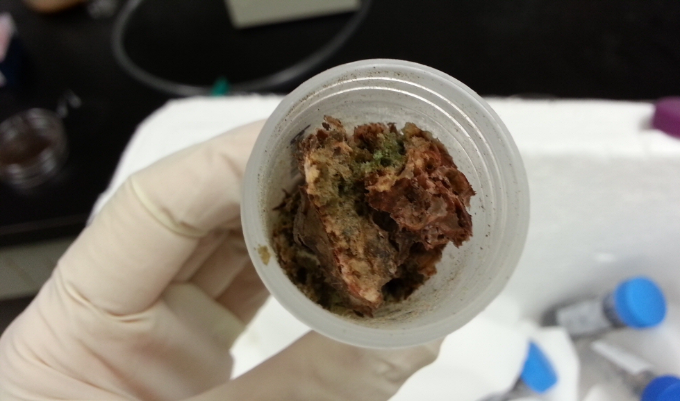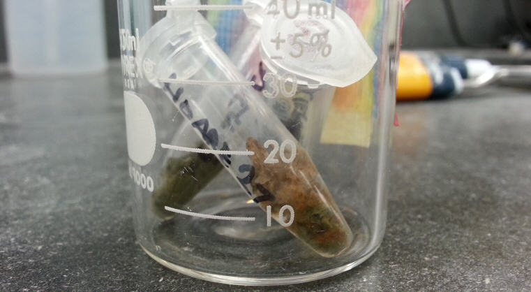 Here’s what one of the samples looked like, arriving back at Kenyon. Still a bit of green.