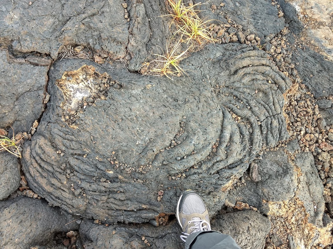 The lava still has the “ropy” texture of molten rock flowing down the mountain.